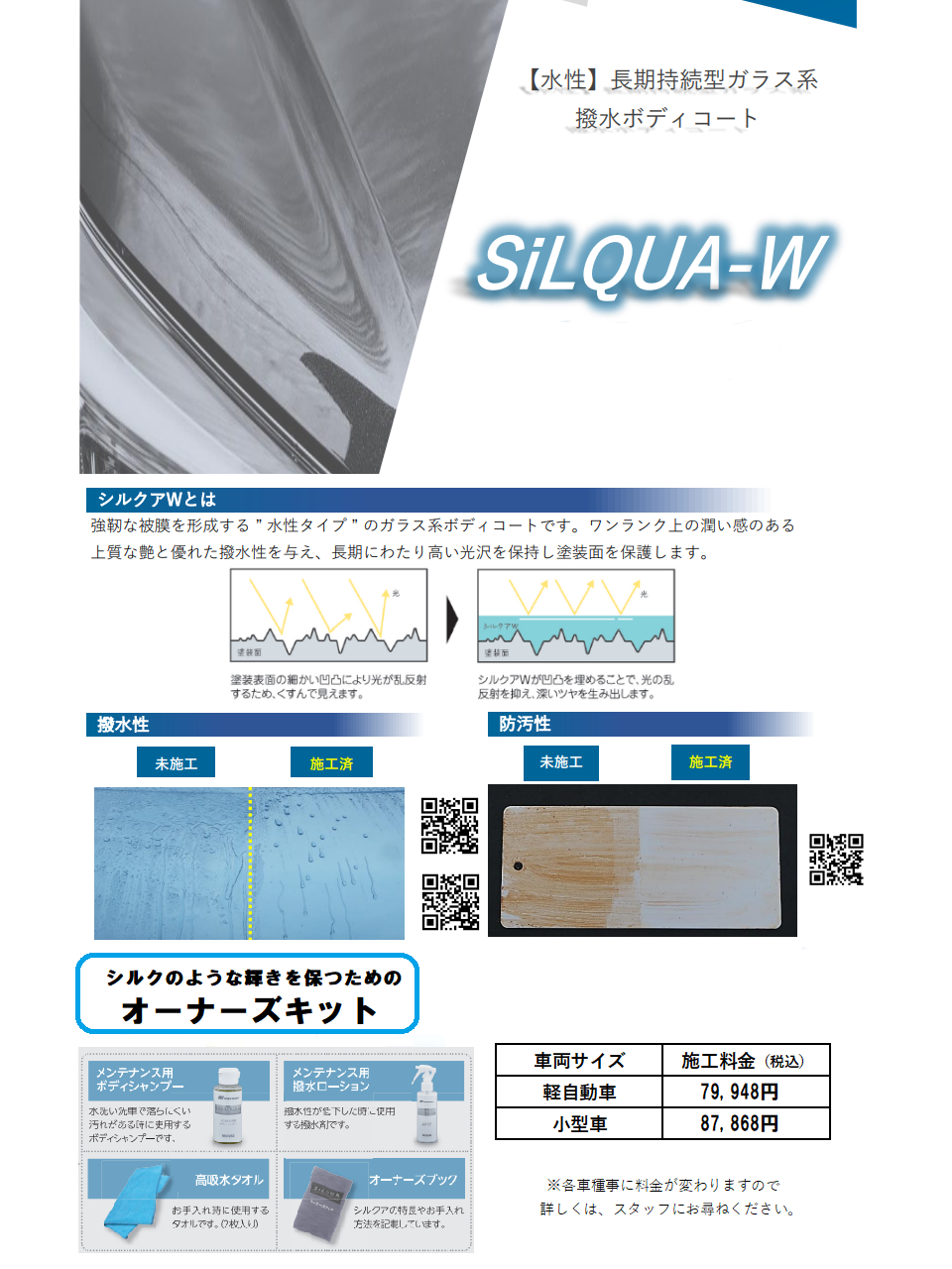 【新車専用】ボディコーティング「D-Lux」「SiLQUA-W」