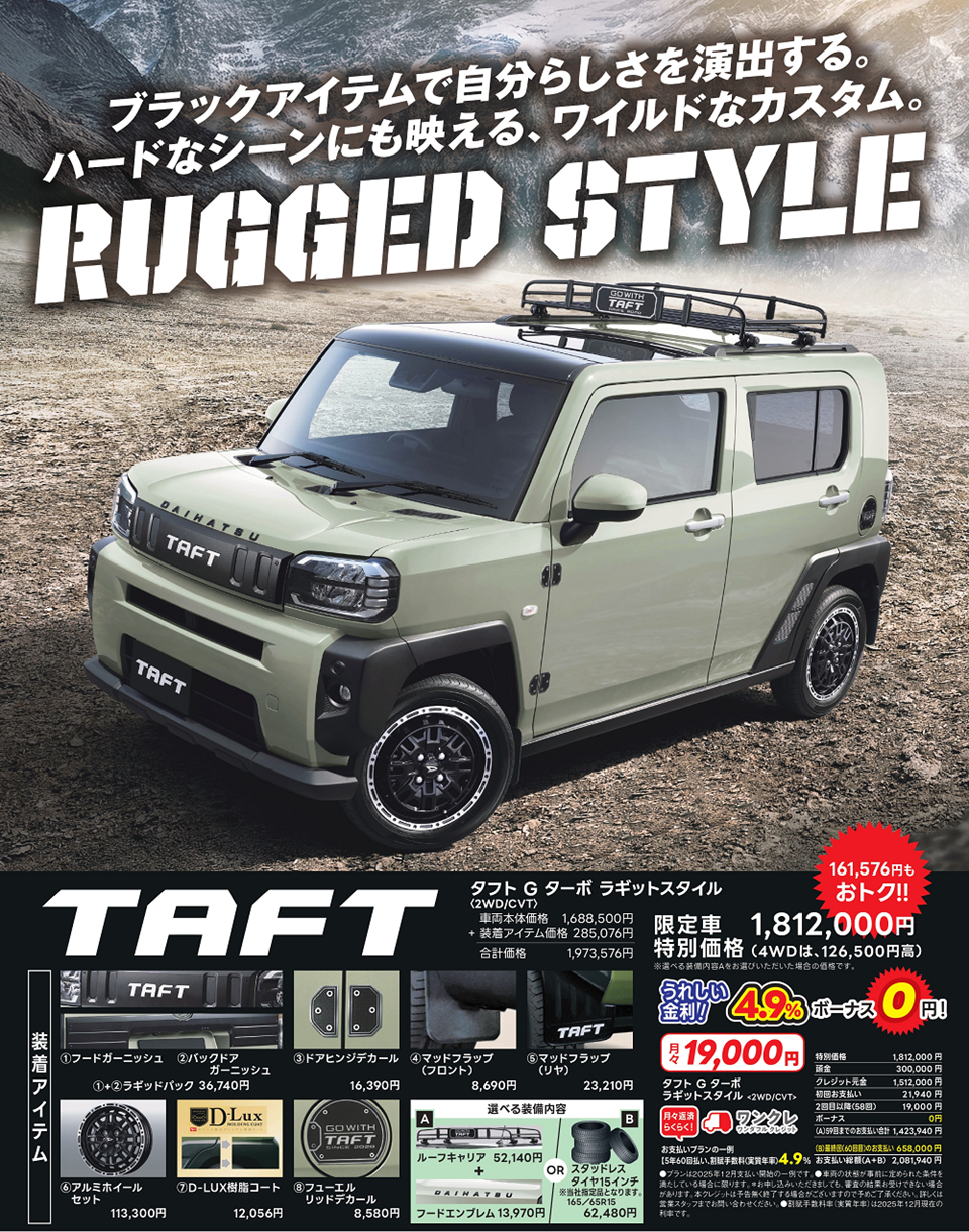 ■既にご成約済みの車両にさかのぼって適用することはできません。 ■このキャンペーンは予告なく終了することがございます。予めご了承ください。 ■他のキャンペーンと併せて適用できない場合がございます。 ■詳しくはスタッフへお問い合わせください。 ※表示価格はすべて税込価格です。