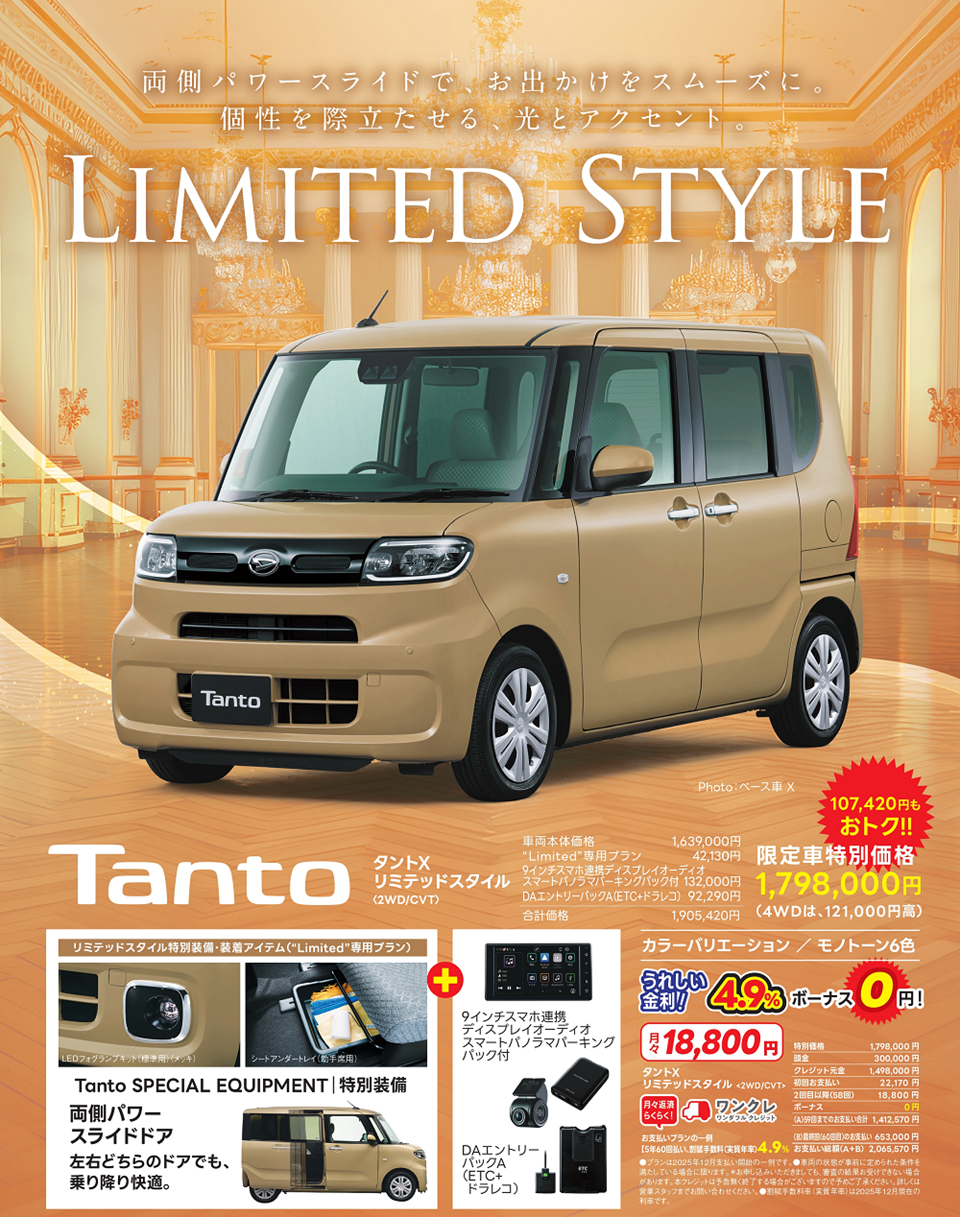 ■既にご成約済みの車両にさかのぼって適用することはできません。 ■このキャンペーンは予告なく終了することがございます。予めご了承ください。 ■他のキャンペーンと併せて適用できない場合がございます。 ■詳しくはスタッフへお問い合わせください。 ※表示価格はすべて税込価格です。